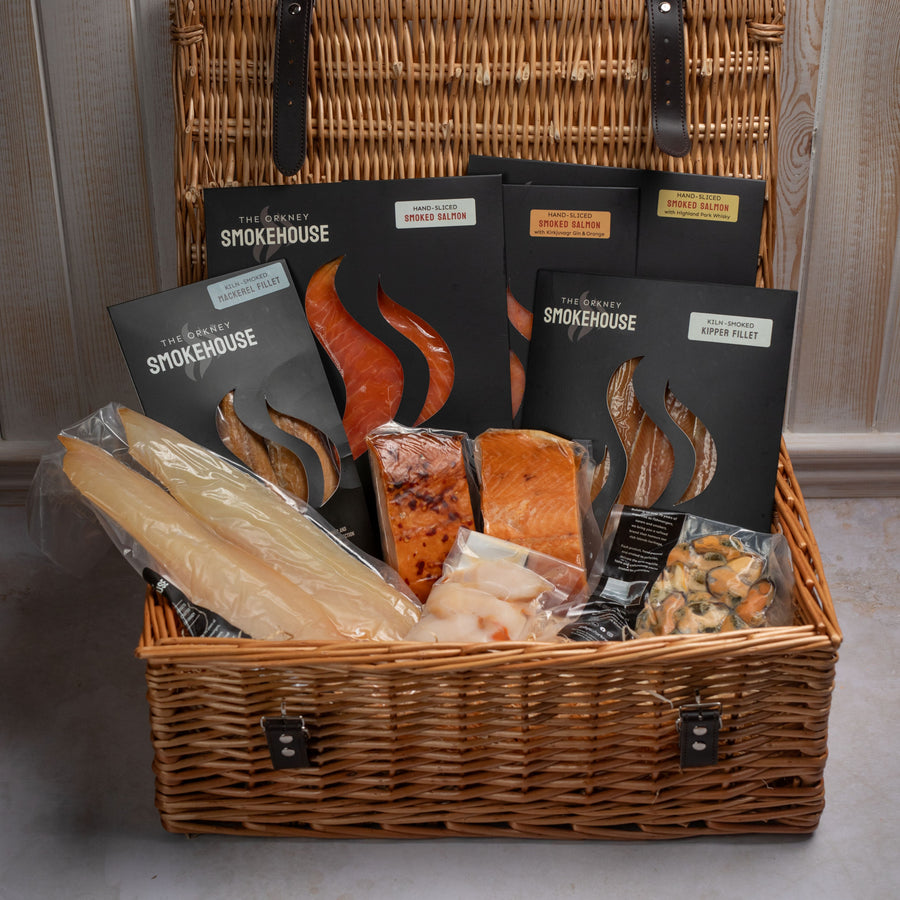 Our Luxury Orkney Smokehouse Fish Hamper for all you fish lovers out there. Bursting full with the finest smoked fish we produce, allowing you to experience the quality of our smoking across our range. With the option to choose your flavoured options to suit your taste, this hamper is a lovely option to really experience Orkney's smoked fish at its best.