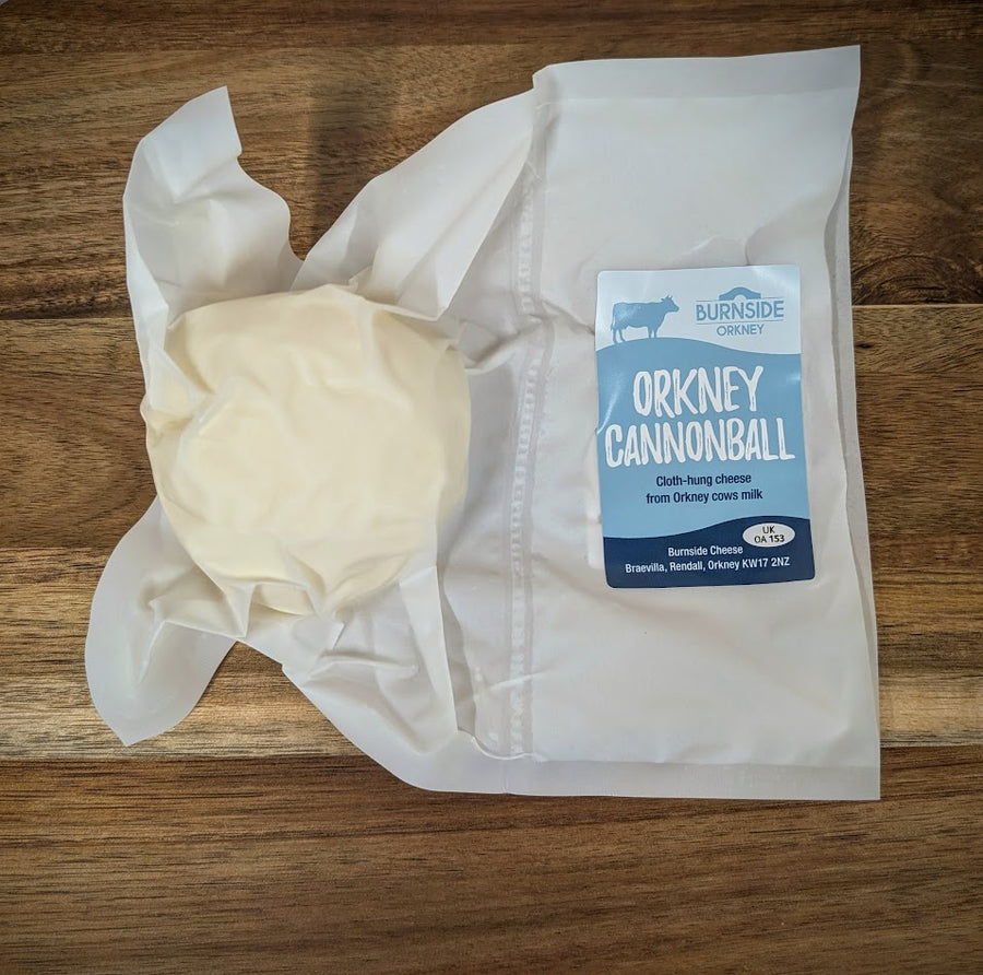 Cloth-hung cheese made using Orkney cows milk. A beautiful, slightly firmer farmhouse cheese providing a mild, creamy flavour with a slightly salty, nutty aftertaste.