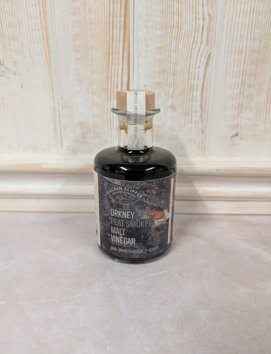 This lovely vinegar made by The Golden Slipper in Orkney is a complex and acidic vinegar made with peat-smoked Golden Promise malt.